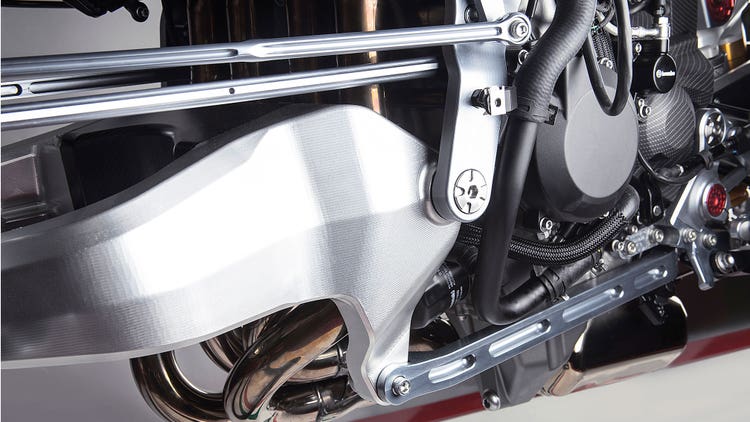 Aluminium alloy billet swingarm with carbon fiber structural center bridge,